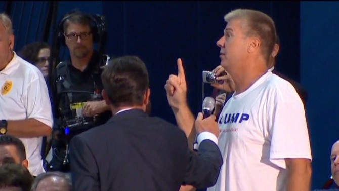 An anonymous man asks candidate Trump a loaded question about Muslims. Why might it be fake? A. Man identifies all Muslims as bad and dangerous. (Including Obama.) B. Man asks Trump, “How do we get rid of them?” C. He brings up the “birther” controversy. D. His name is hopelessly garbled by the announcer. The MSM acts in moral outrage blaming Trump for not “defending Obama”.